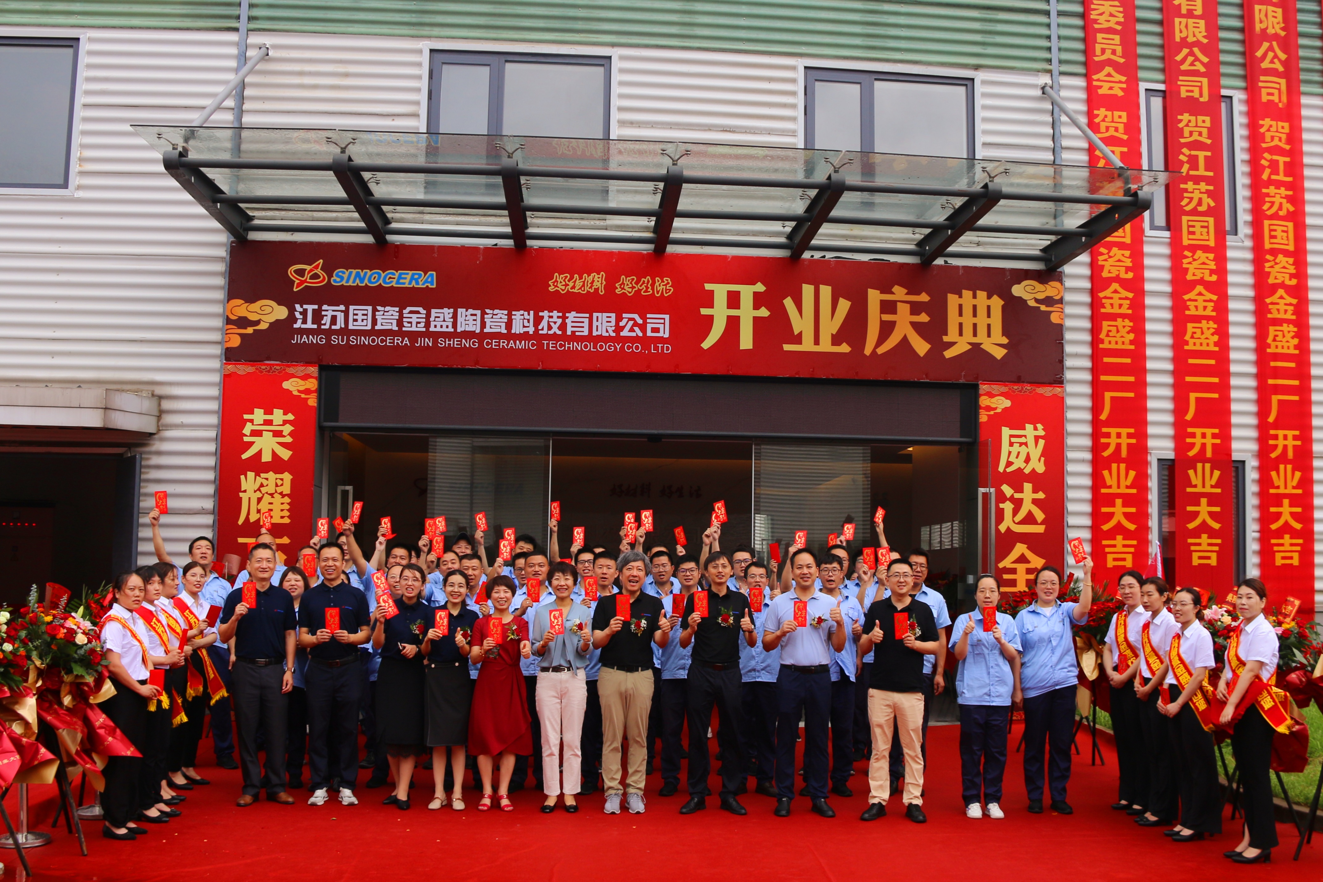 7月8日,江苏国瓷金盛二厂开业庆典暨江苏国瓷精密陶瓷研究院揭牌仪式在常州金坛隆重举行。江苏金坛区委常委、金坛经开区党工委书记杨健,金坛经开区管委会副主任束鸣东,金坛经开区管委会科技金融局副局长蒋伟明,金坛经开区管委会投促中心处长芮瑞,江苏金坛金城科技产业有限公司总经理张国庆,副总经理赵国强,国瓷材料董事长张曦,总经理霍希云,副总经理、董事会秘书许少梅,副总经理、江苏国瓷金盛总经理莫雪魁,国瓷赛创电气总经理于正国、技术总监徐浩然等出席仪式。